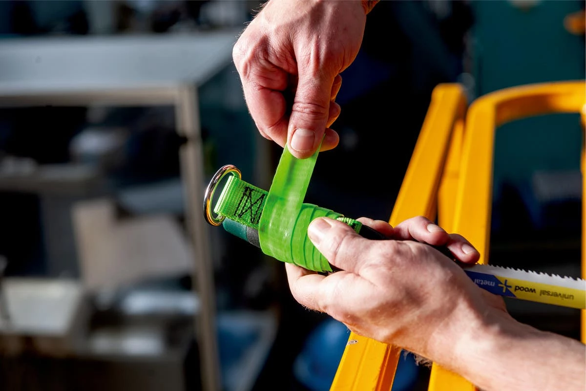 - Easily and securely attach the securing strap to the tool using safety tape (628964000).